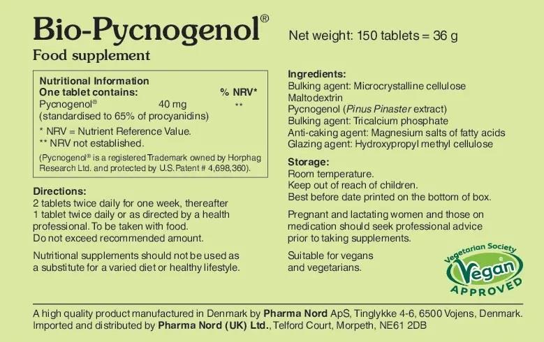 Pycnogenol is a unique plant extract containing French maritime bark (Pinus pinaster), which is grown in sustainable French forests. It contains potent antioxidants that protect the cells from oxidative damage caused by free radicals and is a natural source of proanthocyanidins.