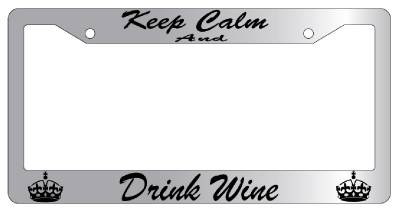 Chrome License Plate Frame KEEP CALM AND DRINK WINE(CURSIVE) Auto Accessory