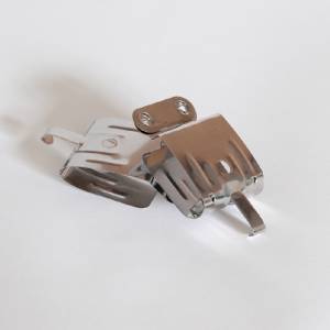 Pair of stainless steel film hanging clips for hanging negatives during drying. One clip has weight added to hold the negative straight.