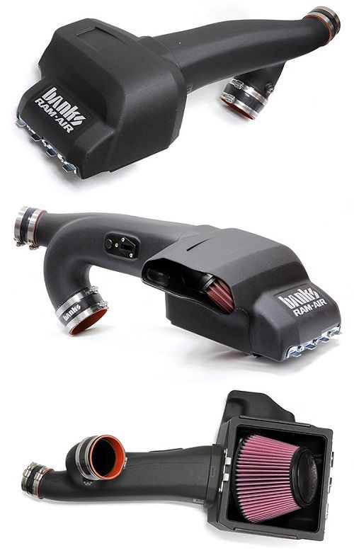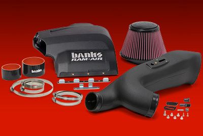 Banks opens up your truck's breathing with a flowbench-developed and dyno-proven Ram-Air Intake System that is 64.6% less restrictive than stock on the 3.5L (46.8% for the 6.2L) at 600 CFM. Ram-Air's lifetime filter has a huge outlet with deep filter pleats that maximize flow and a complete air filter housing that draws in cooler, denser air to the engine for greater power and fuel economy.