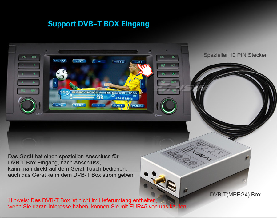unterstützt DVB-T Box Eingang + Stromgeben + Touch-Bedienung