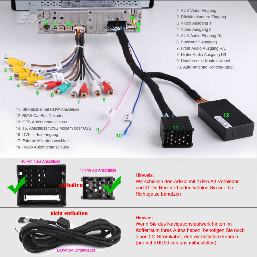 E38 1995-2001 mit Alt 17-Pin Verbinder