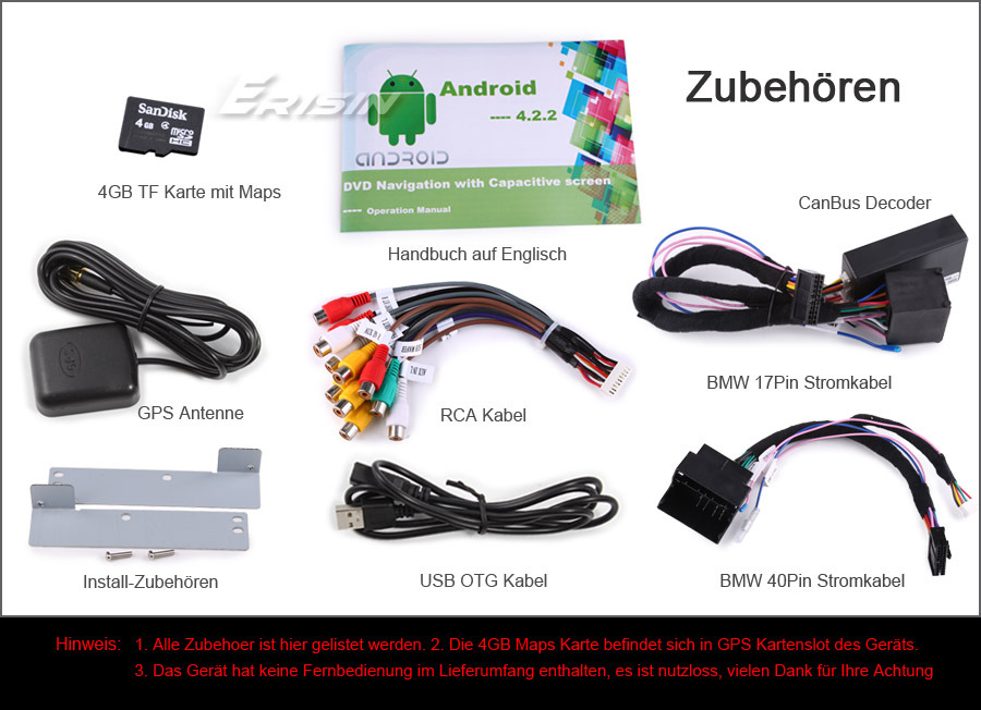 Frei 4GB SD Karte und GPS Antenne im Lieferumfang enthalten.