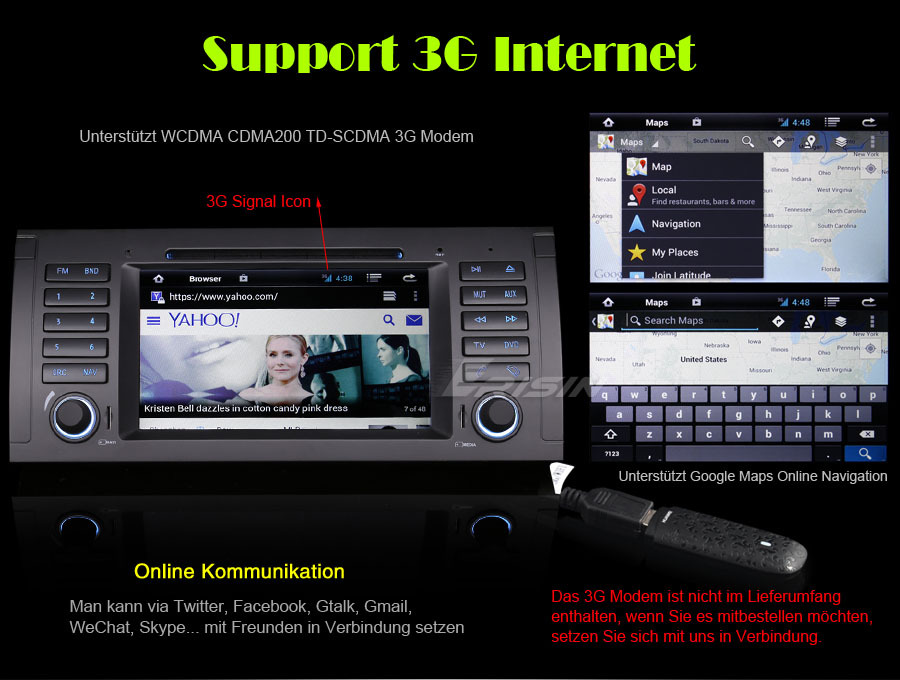 Internet, unterstützt USB Dongle: WCDMA, EVDO,TD-SCDMA.