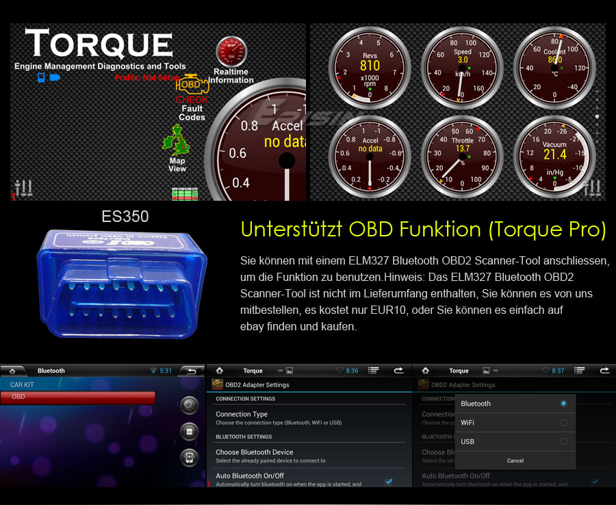 OBD Funktion (Torque Pro), Sie können mit einem ELM327