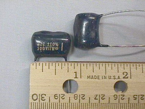 25 ITW .22UF 10% 100V Polypropylene Film Capacitors --- These capacitors are new old stock and are marked .22 / 10% / 100V ITW. They measure 21 mm (.831") long x 12.7 mm (.5") thick with 16 mm (.65") lead spacing. Please reference our part number 2597.