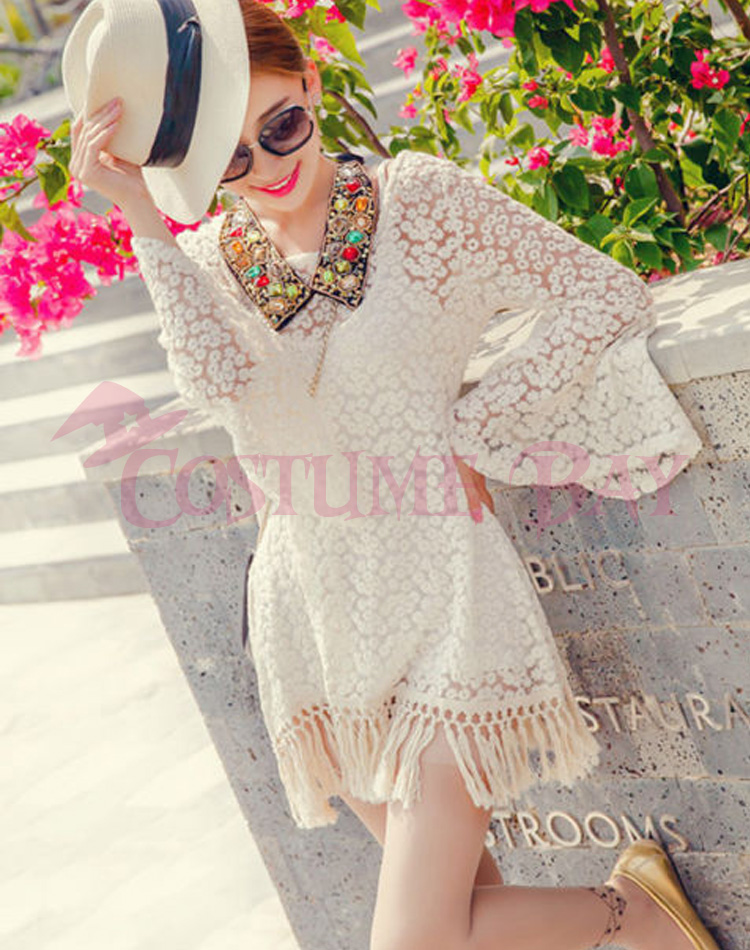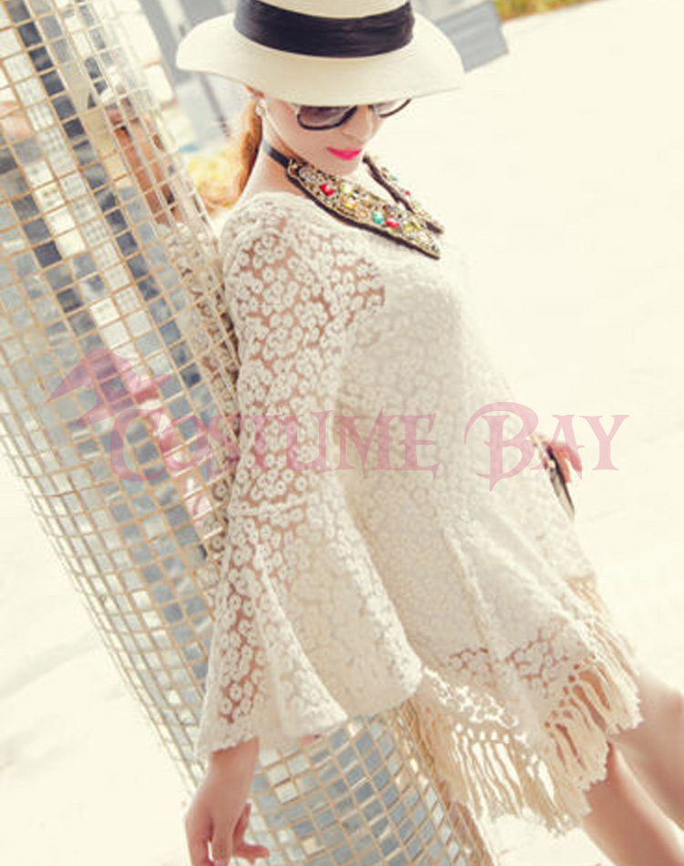Sexy Vintage Hippie Boho Bell Sleeves Gypsy Floral Fringe Lace Crochet Mini Dress. Comfy and attractive, suitable for breezy days and fun night, forever pariable.