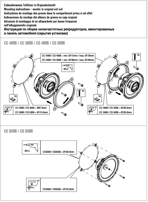 - Auf- und Einbauringe für die Hochtöner