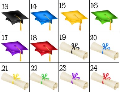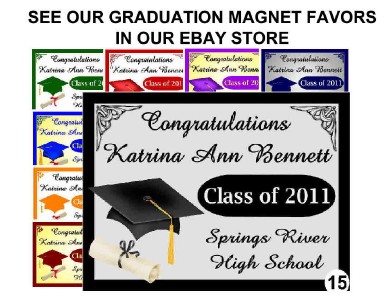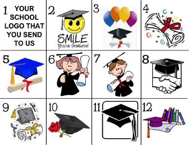 _________________________________ Due to limited space, these will be printed in the exact format as shown in the samples. Example: Congratulations Nicole 1. First name Only (one name only) 2. Graphic number shown above 3. Graduation year 4. Lettering color (if no color is given, BLACK will default and be used)