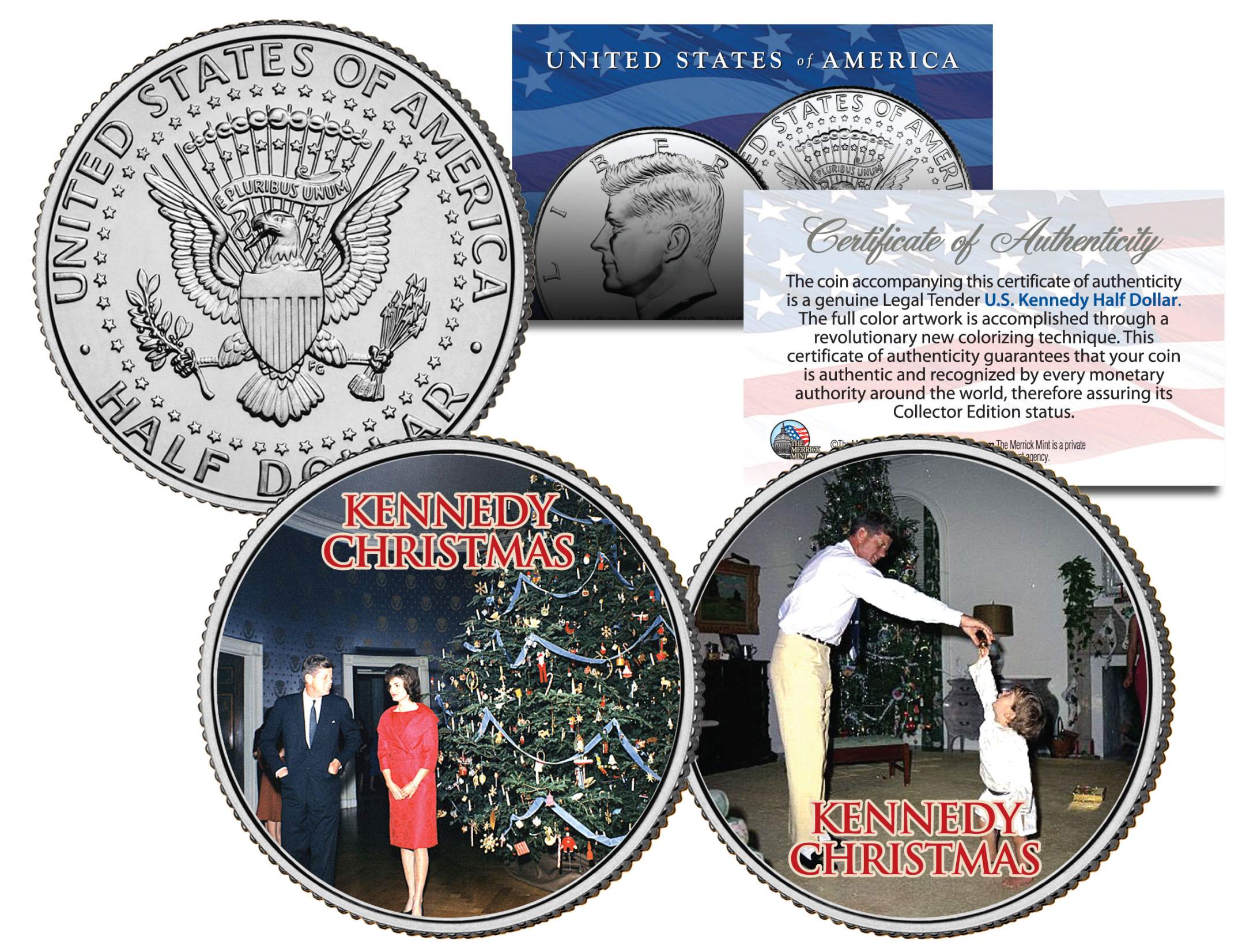 KENNEDY CHRISTMAS Colorized JFK Half Dollar U.S. 2-Coin Set JR Jackie JOHN F