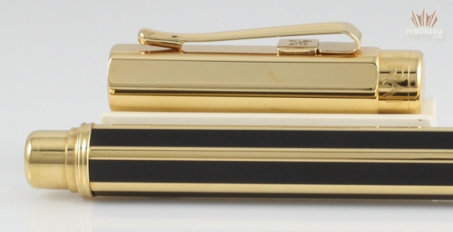 black chinese lacquer and heralds a solid 18k gold nib. The Swiss quality of