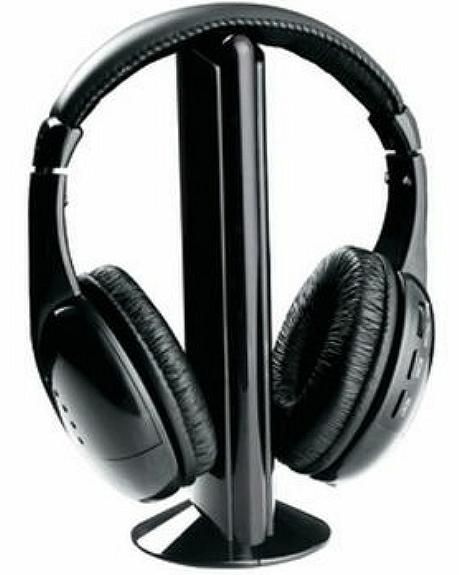 PROFESSIONAL 5-IN-1 WIRELESS HEADPHONE SYSTEM WIRELESS HEADPHONE SUITABLE FOR LISTENING TO ANY DEVICE WITH AUDIO OUTPUT BUILT-IN MICROPHONE FOR WEB CHAT, WIRELESS MONITOR FOR MONITORING SOUND FROM ANY ROOM (E.G. BABY MONITORING), BUILT IN FM RADIO WIRED HEADPHONE CAPABILITY, HIGH-POWERED SIGNAL WITH EFFECTIVE LONG RANGE HI-FI and BASS EFFECT FOR SUPERIOR SOUND PERFORMANCE. A physical description follows...