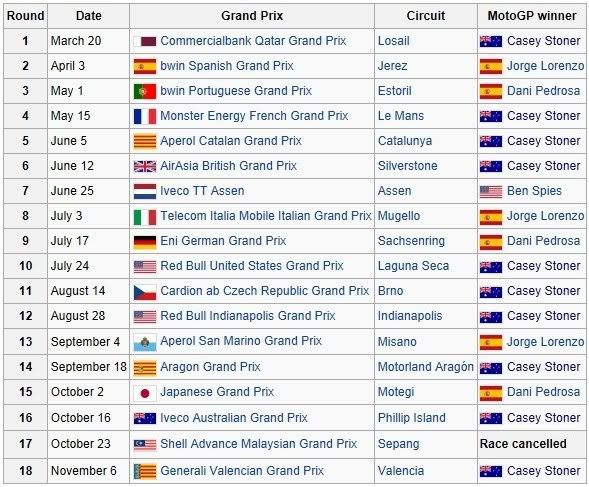 Casey Stoner was crowned as MotoGP World Champion for the second