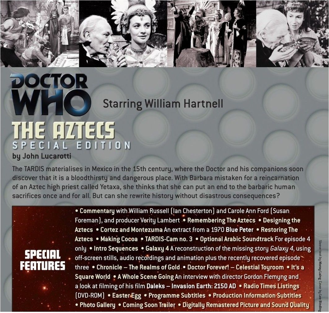 Aztecs is the first Doctor Who DVD devoted to the long-running