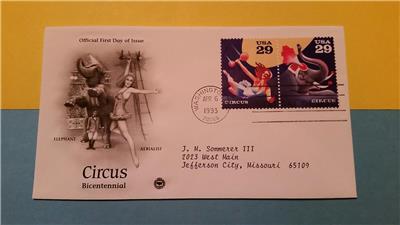 WOW ........... RARE! VINTAGE * CIRCUS BICENTENNIAL * ELEPHANT - AERIALIST * 29 cent US STAMP * STAMPED APRIL 6, 1993 - WASHINGTON D.C. FIRST DAY ISSUE * US POSTAL STAMP * VERY UNIQUE ITEM * A MUST HAVE! (very tough find!) additional auctions ship for free! Buy more - save More ......