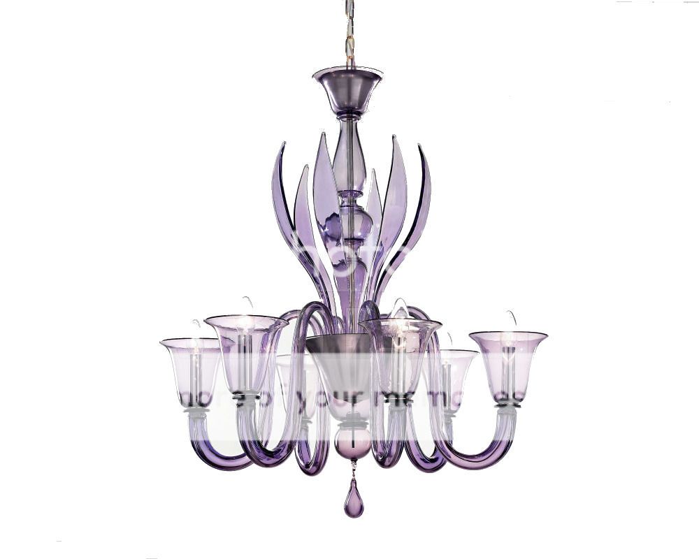 Lampadario Voltolina Rialto Cristallo Viola Sospensione Vetro di Murano Made in Italy