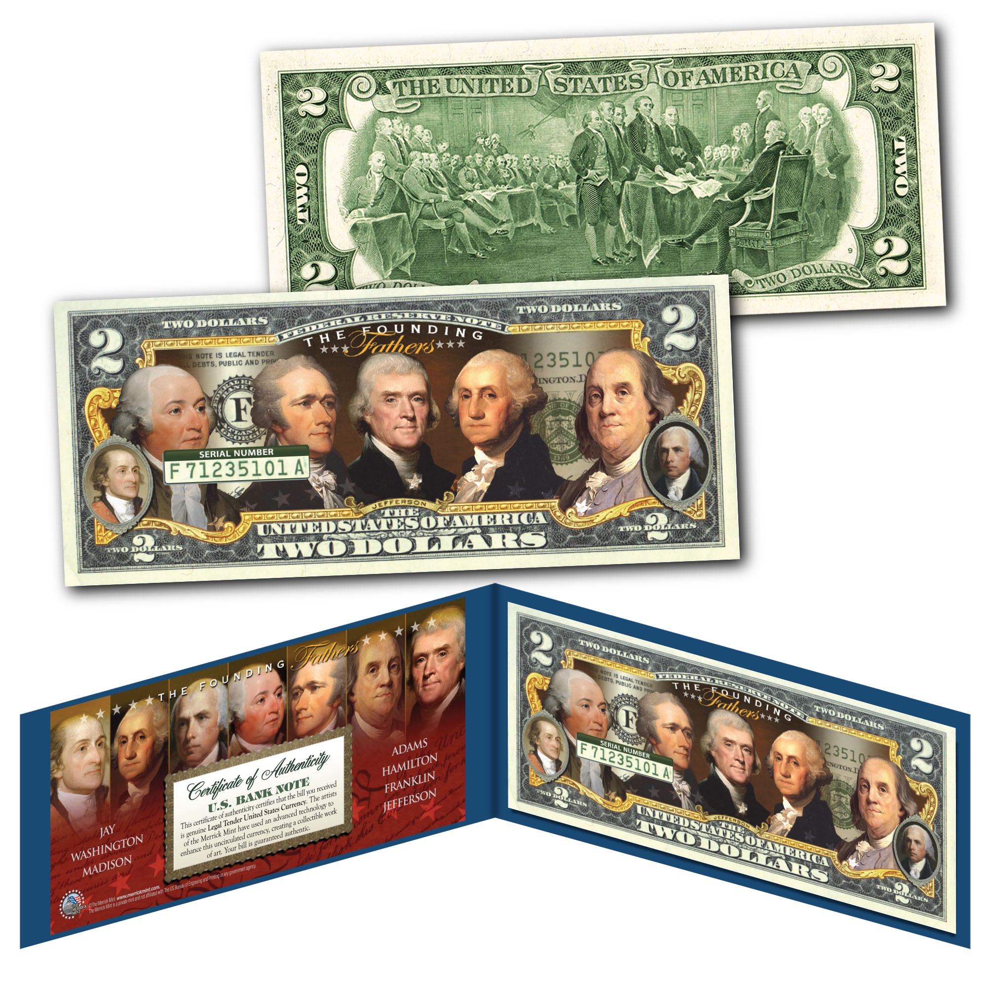 FOUNDING FATHERS OF THE UNITED STATES Colorized Obverse $2 Bill US Legal Tender