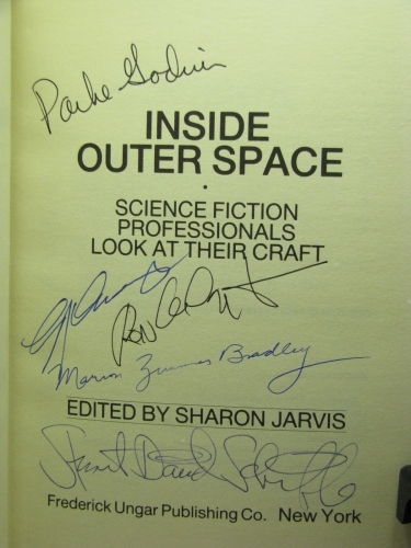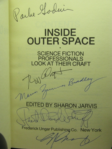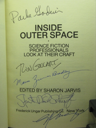Description: This item is for one copy (of four available for sale) of a hardback book published by Frederick Ungar Publishing in 1985. The copyright page states 'First Edition'. Signed by Marion Zimmer Bradley, C. J. Cherryh, Parke Godwin, Stuart David Schiff, and Ron Goulart on the title page without inscription or personalization.