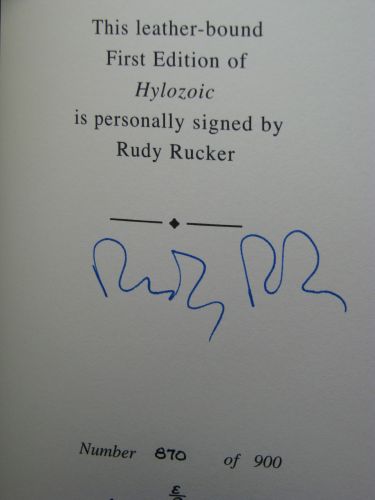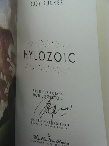 Description: Leatherbound hardback book published by Easton Press in 2009. Bound in top grade dark blue leather with 22kt gold lettering and cover artwork. Hubbed spine, acid neutral paper with page edges gilded, satin moire endpapers, and a satin ribbon book mark sewn in. Collectors Note, Certificate of Authenticity, and unused publisher supplied bookplate laid in (not attached). Originally issued by Easton Press signed only by the author on the limitation page without inscription or personalization, we have also gotten this copy signed as follows: Signed by frontispiece artist Bob Eggleton without inscription or personalization. Book number 870 of 900 copies issued by Easton Press as part of the Signed First Editions of Science Fiction series.