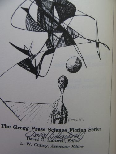 Note on Gregg Press printings: Many of the Gregg Press SF books were printed in editions of only 200 to 300 copies. Quite a few of these were sold to libraries, so finding non-exlibrary copies of all the books can be challenging. Some of the books that sold well were reprinted. It is possible to tell on many of those that were reprinted if a book is a first printing or not but not in all cases. Most first printings stated this on the copyright page but according to Hartwell, a few first printings had no statement of first printing and a few reprint runs didn't get the first printing statements removed.