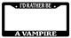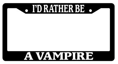 Black License Plate Frame I'd Rather Be A Vampire Auto Accessory