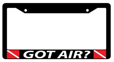 Black license plate frame GOT AIR? w/FLAGS made from high impact ABS plastic, covered with color vinyl printing.