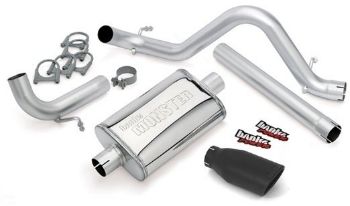 Too much potential power is lost when the Jeep engine labors to expel exhaust gases through a backed-up system. The Banks Monster® Exhaust keeps exhaust flowing freely all the way from the catalytic converter to the tailpipe tip. Backpressure is virtually eliminated, resulting in greater effciency, fuel economy and power you can feel. Banks Monster® Exhaust stainless steel, straight through muffler more than doubles stock flow and it's sound tested to deliver that rich, throaty growl you want, with none of that maddening drone you'll find on our competitors generic designs.