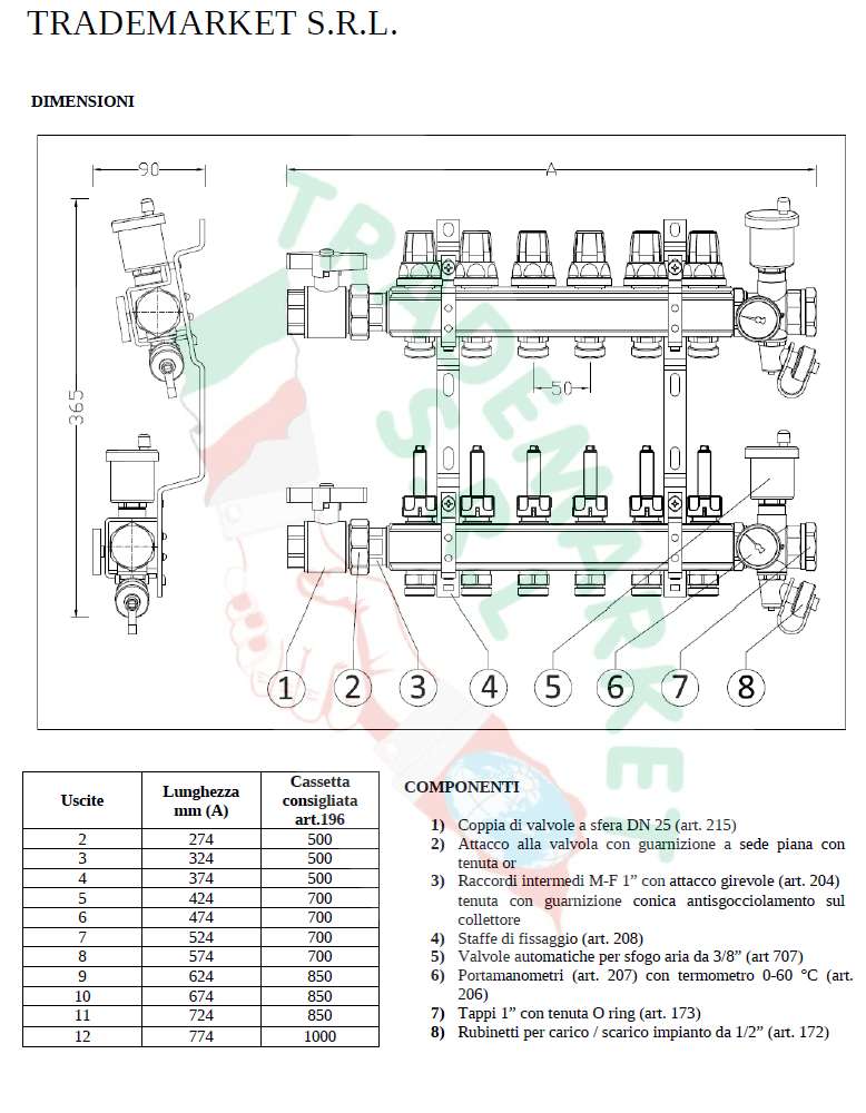 COLLETTORI DA 2 A 15 USCITE, IL KIT E' COMPLETO E COMPRENDE: