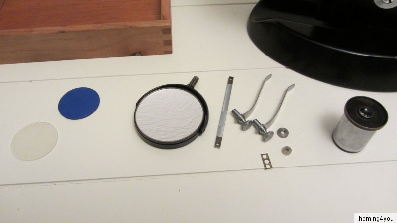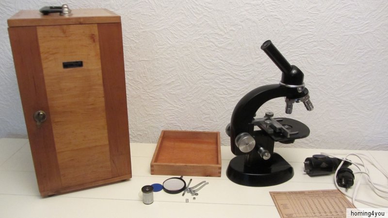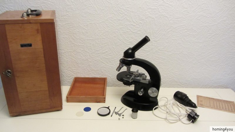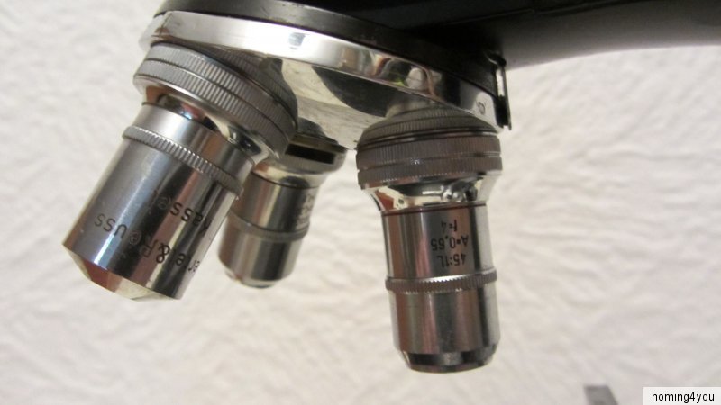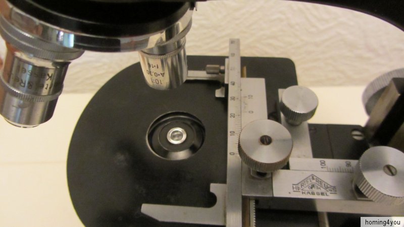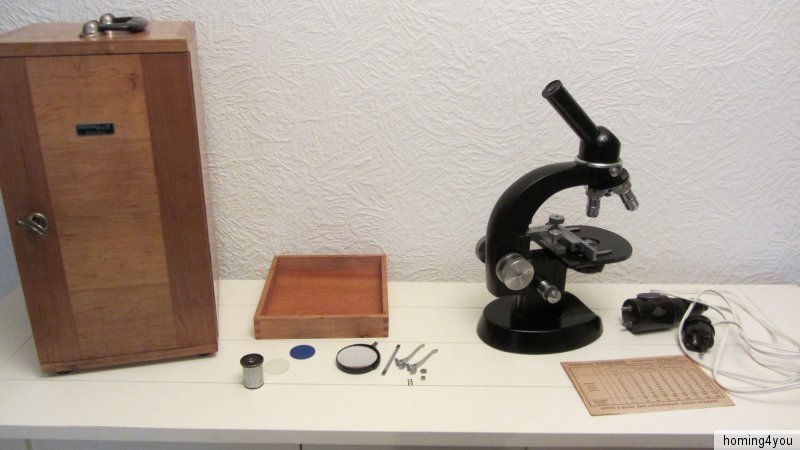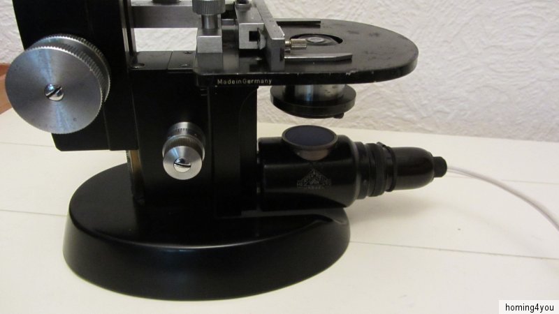 Das Mikroskop befindet sich in einem, altersbedingten Erhaltungszustand. Den zahlreichen Bildern, die ebenfalls Bestandteil der Artikelbeschreibung sind, können Sie weitere Details zum jetzigen Zustand einsehen.