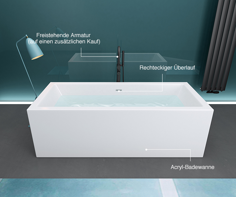Dank des rechteckigen Überlaufs ist die Badewanne