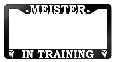 Glossy Black license plate frame Meister In Training Auto Accessory Soul Eater made from high impact ABS plastic, covered with color vinyl printing.