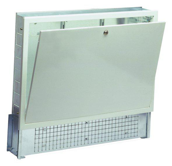 Cassetta da cm. 70 modello IC-1137 per collettori di impianti radianti con riscaldamento sottopavimento, verniciata bianco RAL 9010 con serratura.