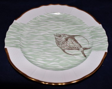 Bernaudaud & Co Limoges Fish Accent Salad Plate, LAMPRIS TACHETE, 9 5/8"
