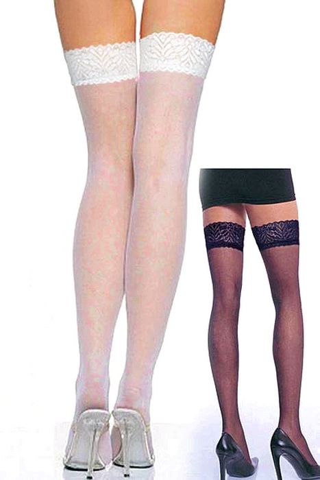 Straps Strümpfe mit Spitzenabschluß in 2 Farben
