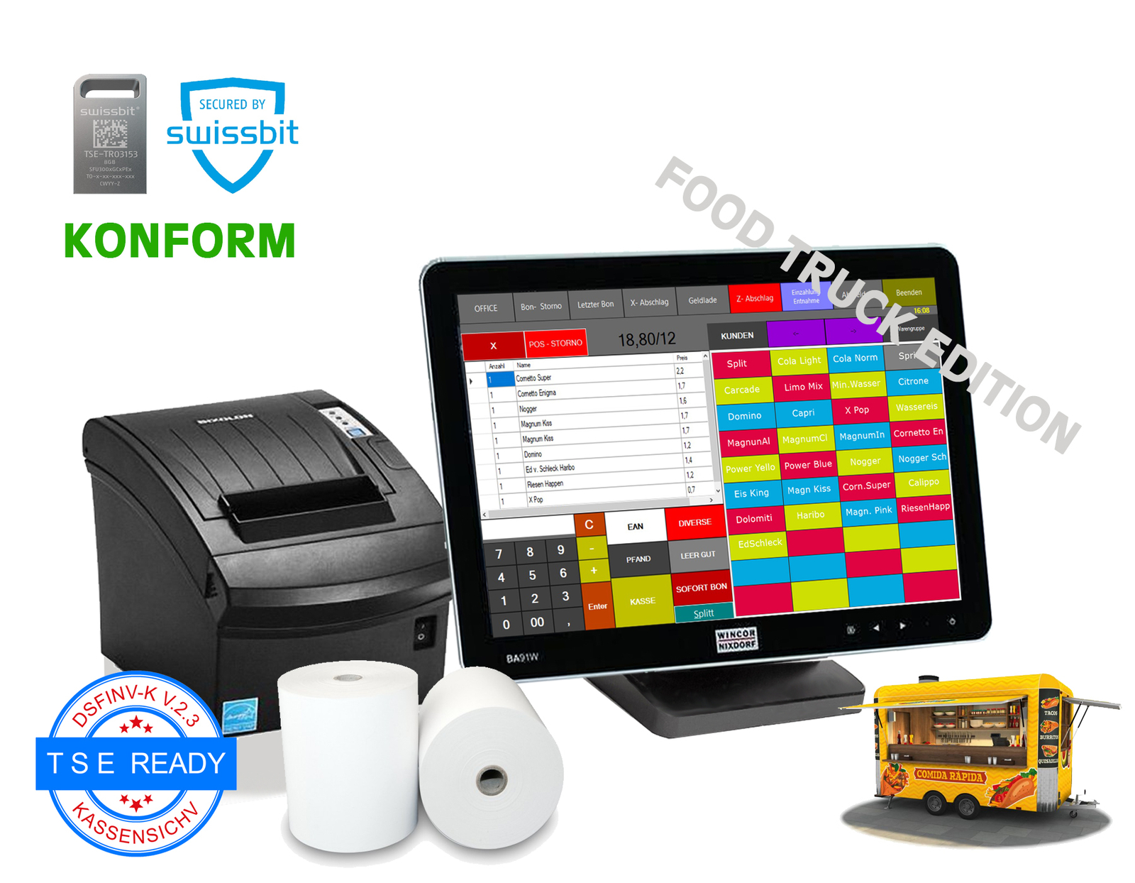 TSE Touch - Kassensystem für Food-Truck, Cafe, Imbiss, Schnellverkauf- Kein ABO