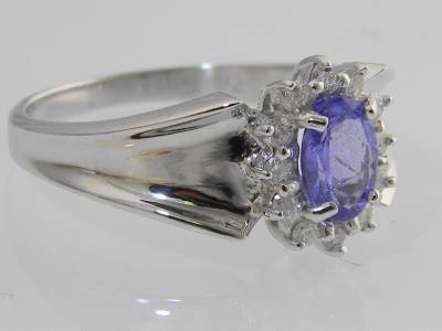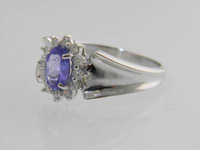 14KT WHITE GOLD .84CTW DIAMOND & GENUINE OVAL-CUT TANZANITE RING