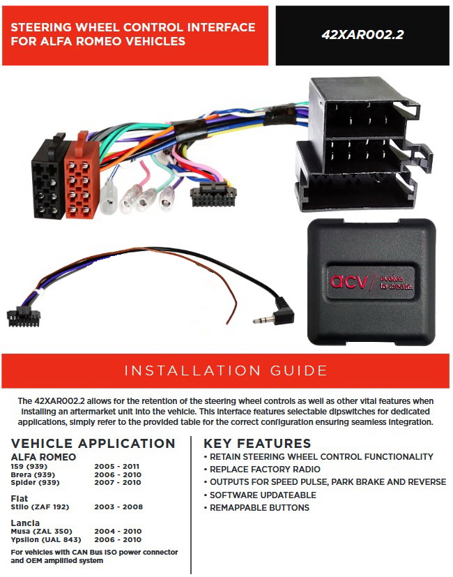 - Der Adapter passt an die Lenkradanschlüsse von 1- oder 2-DIN Nachrüstradios von Alpine, Clarion, JVC, Kenwood, Pioneer, Sony, Xzent und Zenec.