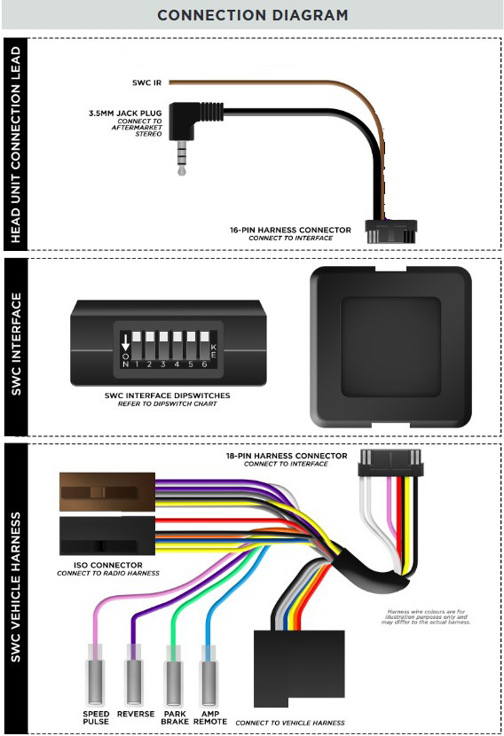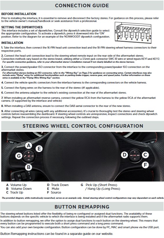 - Lenkradbefehle (Anschlusskabel für Alpine, Clarion, JVC, Kenwood, Pioneer, Sony, Xzent und Zenec.