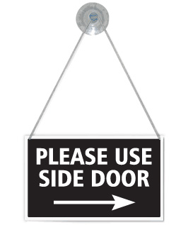 | 'PLEASE USE SIDE DOOR' HANGING SIGN, WINDOW, DOOR - ANY COLOUR |