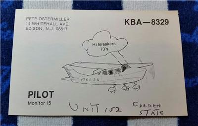 WOW! ........... RARE VINTAGE "HAM CB BASE STATION SHORT WAVE RADIO QSL TRADING CARD * PILOT - GRAPHICS : AIRPLANE * PETE OSTERMILLER - EDISON, NJ NEW JERSEY * KBA 8329" - VERY UNIQUE ITEM * JUST IN! (great find!) additional auctions ship for free! Buy more - save More ......