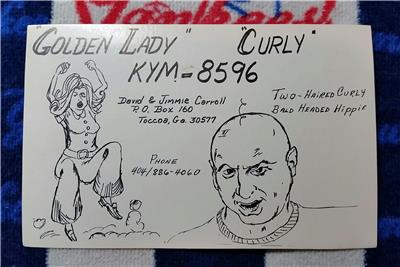 WOW! ........... RARE VINTAGE "HAM CB CITITZENS BAND BASE STATION SHORT WAVE RADIO QSL TRADING CARD * GOLDEN LADY & CURLY - GRAPHICS : WOMAN & BALD MAN - DAVID & JIMMIE CARROLL - TOCCOA, GA GEORGIA" - VERY UNIQUE ITEM * JUST IN! (great find!) additional auctions ship for free! Buy more - save More ......