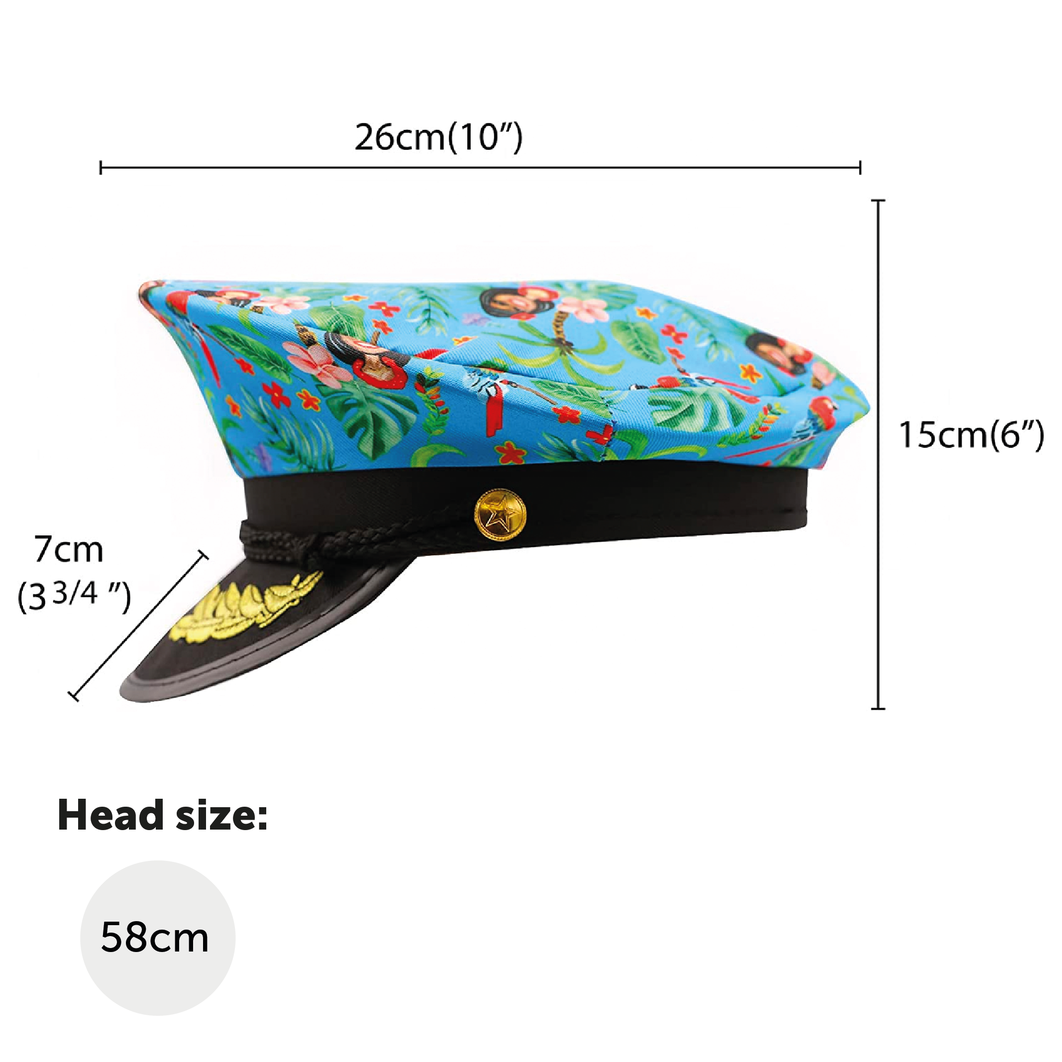 ONE SIZE FITS ALL ADULTS: No matter the size or shape of your head, this Hawaiian Sailors Captain Hat is 58cm in head circumference, and will fit any adult with comfort, ease, and a firm positioning to keep you sailing through the day!