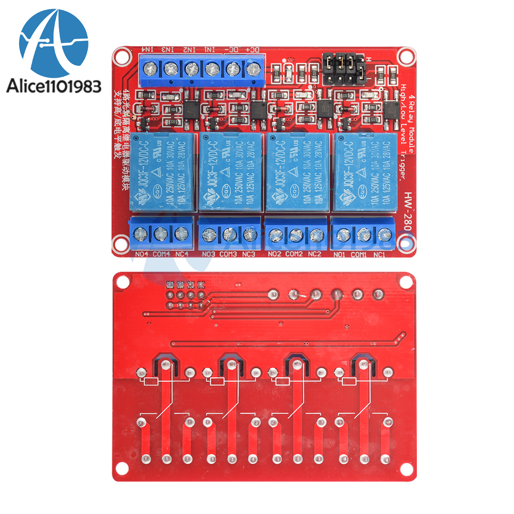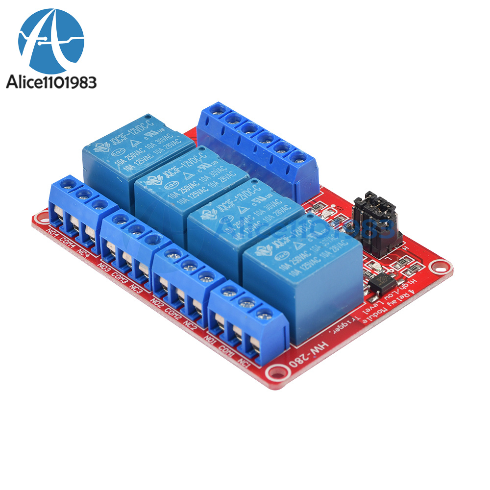 1x 12V 4 Channel Relay Module With Optocoupler High and Low Level Trigger