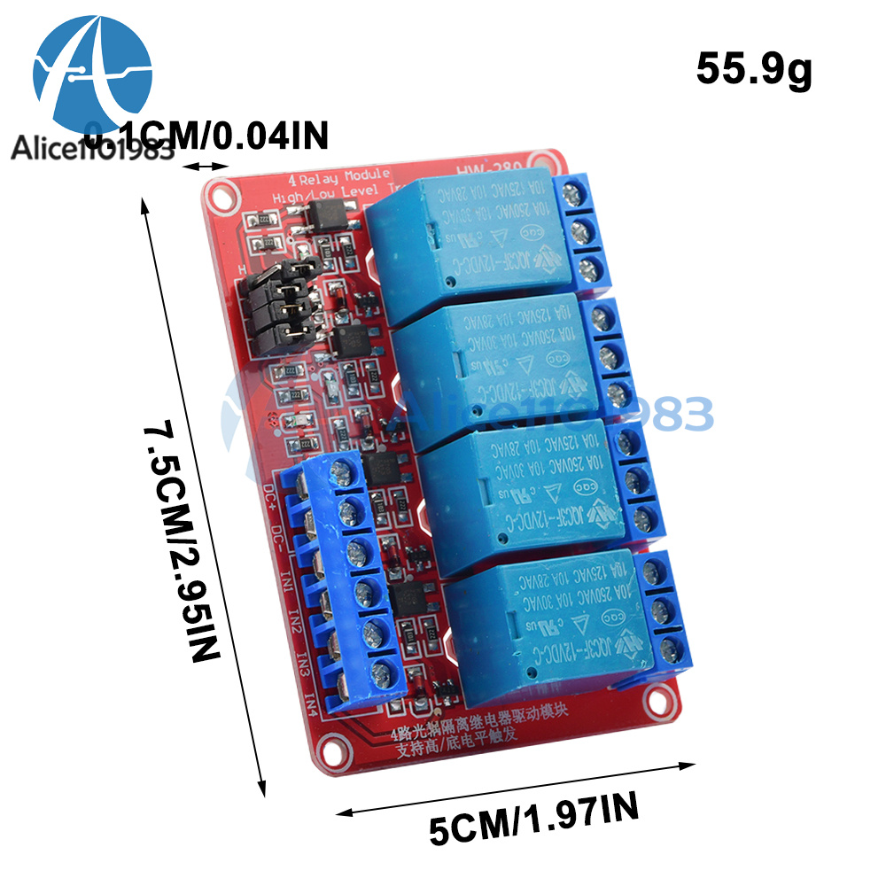 3. IN1-IN4: each way based on the settings , can be high or low to control the corresponding relay