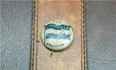 WOW! ........... RARE - VINTAGE "1917 GREENBACK - CHICAGO ILL - ARGENTINA - INTERNATIONAL WORLD FLAGS COLLECTIONS PIN BACK BUTTON" * 3/4" * VERY UNIQUE ITEM * JUST IN! (great find!) CHECK OUT OR STORE FOR OTHER GREAT ITEMS! additional items ship for free!