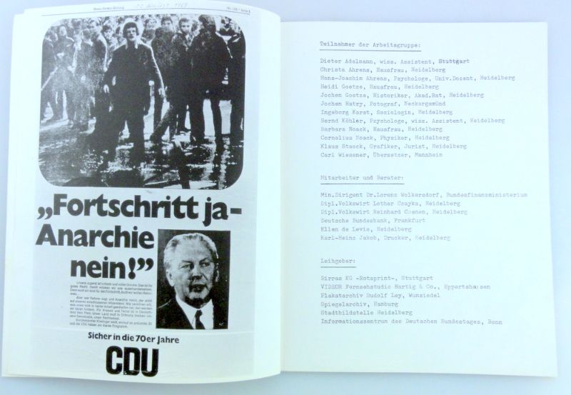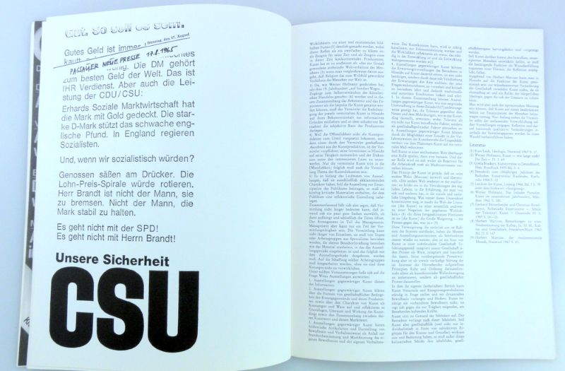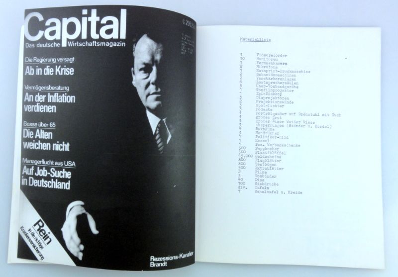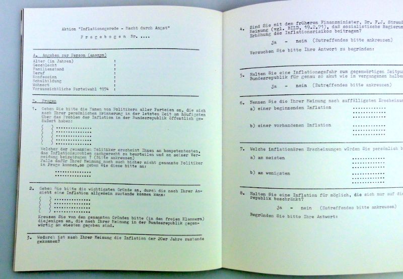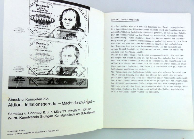 Dokumentation der Aktionen in Stuttgart und Frankfurt. Durch diese Aktion sollte die Struktur einer Manipulationstechnik des öffentlichen Bewußtseins am Beispiel einer von der CDU/CSU beschworenen Inflationsgefahr offen gelegt werden.