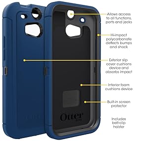 The Defender Series for the all new HTC One is made up of a two-piece polycarbonate inner shell that deflects impact force, a built-in screen protector that guards against scratches and scrapes and an outer durable synthetic rubber slip cover that absorbs impact. These materials work together to take on the heavy use and accidental abuse that can happen to your vital device.