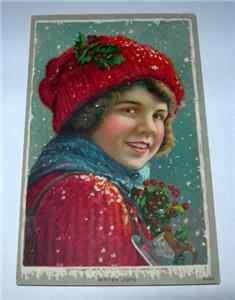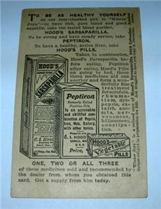 WHAT YOU ARE BIDDING ON IS A REAL NICE ANTIQUE ADVERTISING TRADE CARD 1917 HOODS MEDICINES "WINTER JOY" THIS CARD IS IN GOOD CONDITION.