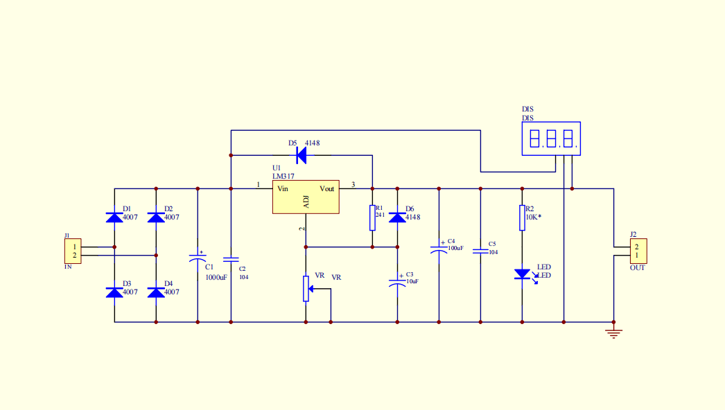 NOTE: In order to maintain good regulation characteristics, please ensure LM317 chip input and output pressure of about 3V; when using a large current, it is recommended to increase the area of heat sink or cooling fan.