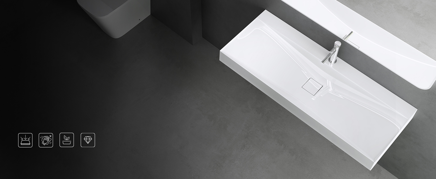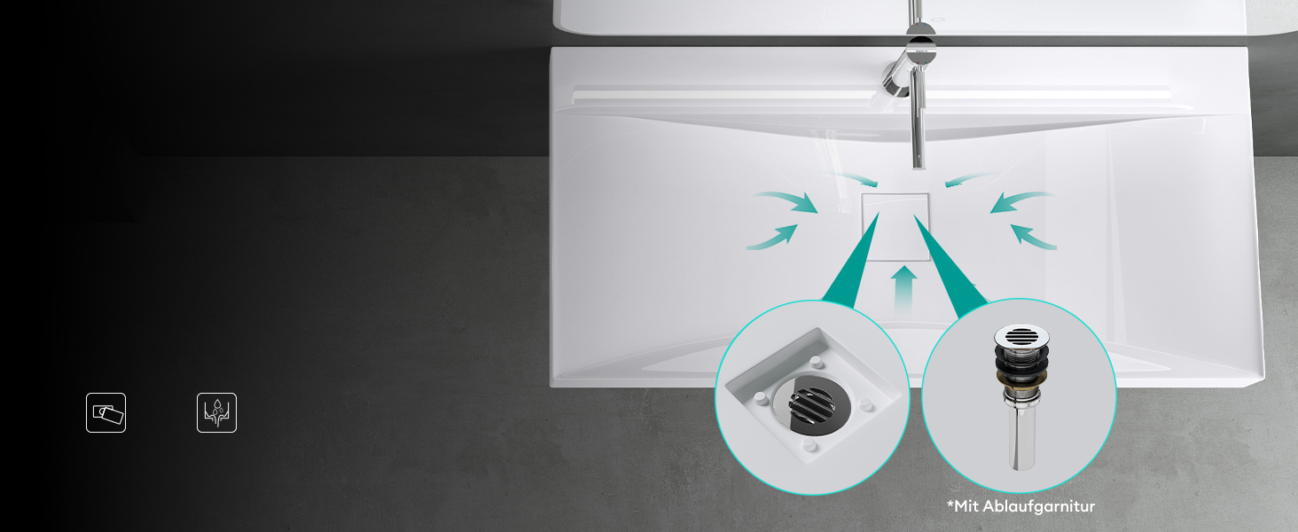 Das Mineralguss-Waschbecken setzt auf deutsche Monoblock-Technologie für maximale Stabilität. Sie verhindert Probleme wie Undichtigkeiten, Risse oder Verfärbungen durch fehlerhafte Verklebungen und sorgt so für höchste Haltbarkeit und Zuverlässigkeit.